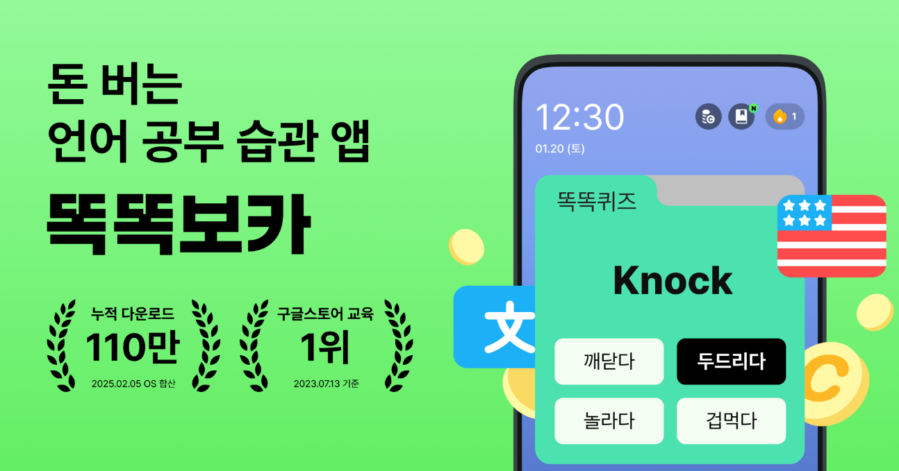 똑똑보카는 스마트폰 잠금화면을 활용해 영어 단어를 습관처럼 학습하게 만들어주는 신개념 교육 앱이에요.
